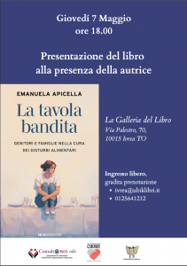 Vi aspettiamo a Ivrea Giovedì 7 Maggio 2026 alle 18, presso “La Galleria del Libro” in Via Palestro 70, per la presentazione del libro “La tavola bandita. Genitori e famiglie nella cura dei Disturbi Alimentari.”